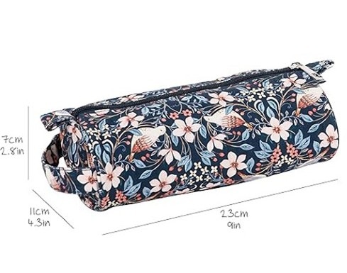 Zacht etui voor haaknaalden, bekleed met katoenen stof met een vogelprint. Handvat aan één uiteinde om makkelijk mee te nemen. Ritssluiting over de hele lengte voor gemakkelijke toegang tot je haaknaalden.