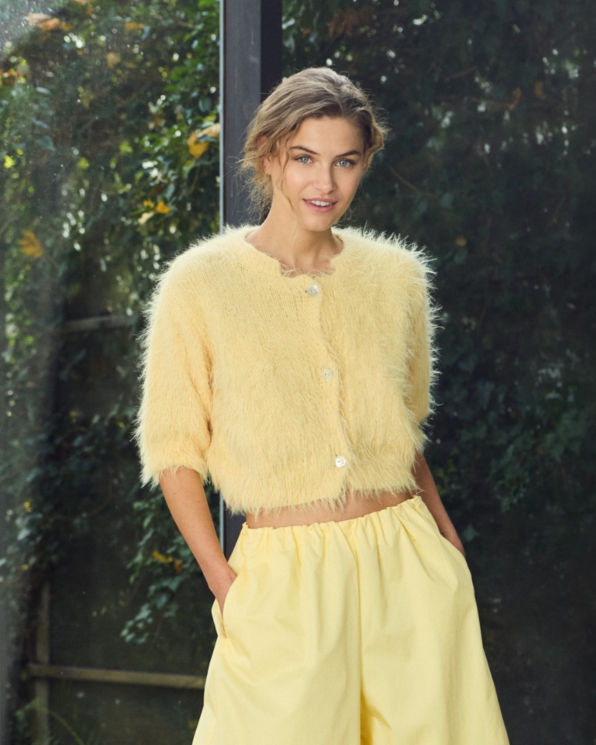 Dit model is afkomstig uit Lookbook 20 van Lana Grossa. Het vest op de foto is gemaakt met kleur 32 op naald 4-5mm.